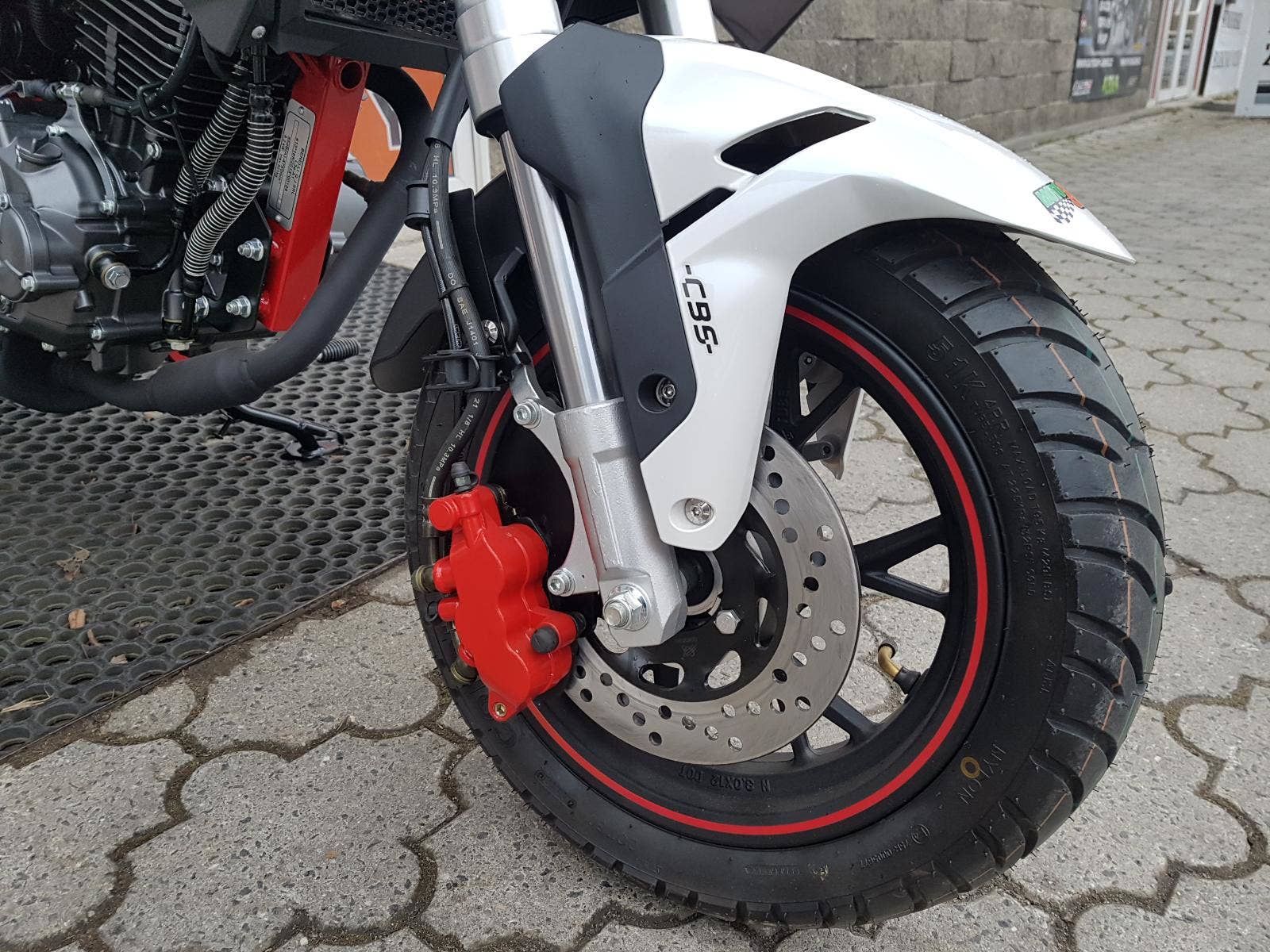 Motocykl je vybaven CBS - brzdový systém, který umí propojit přední a zadní brzdy.