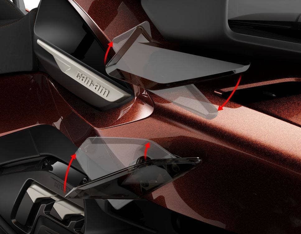 Regulujteproud vzduchu na spodní část těla řidiče a spolujezdce. Změňte na uzavřené, otevřené nebo paralelní pozici pro optimální pohodlí. Jednoduše, bez nářadí, abyste měli více času na jízdu.