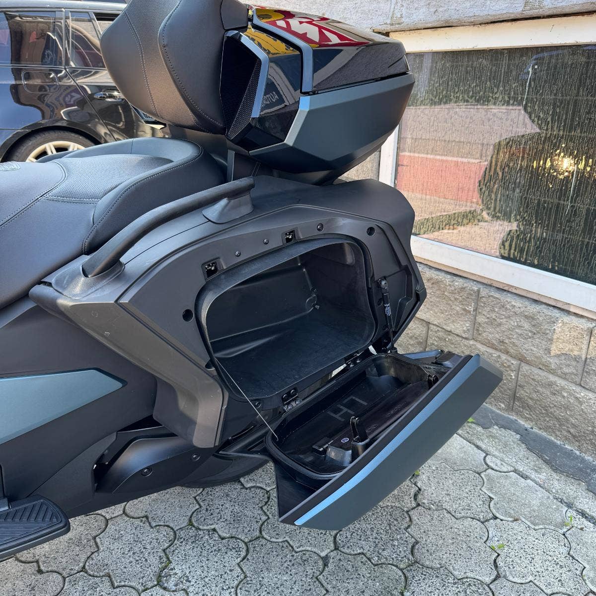 Prémiové LED světlomety / Rider cestovní palubka / Nastavitelné stupačky spolujezdce / Výšivka / Tlačítka pro ovládání zvuku / Odkládací schránka s USB / Tempomat / Integrované pevné boční kufry / Nastavitelné elektrické čelní sklo s paměťí / Vyhřívané rukojeti řidiče a spolujezdce / Vyhřívaná sedadla řidiče a spolujezdce / Plně lakovaný horní kufr kompatibilní s LinQ a s opěradlem spolujezdce / Barevný zadní panel / Nastavitelné boční větrné deflektory - spodní a horní