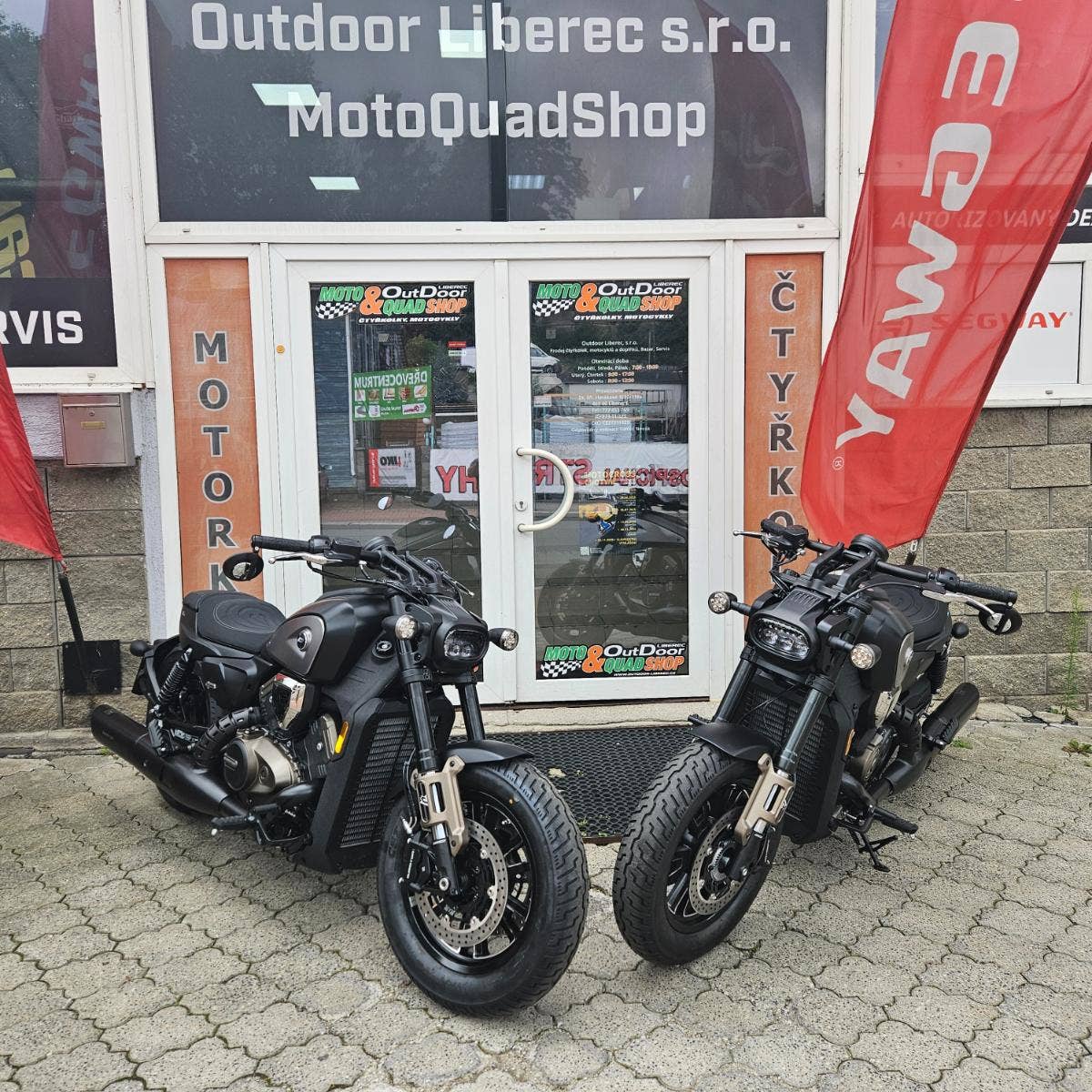 Outdoor Liberec = oficiální zastoupení čtyřkolek Can-am, Arctic Cat, Polaris, TGB, Access motor, Linhai, motocyklů Benelli a Voge, pitbiků YCF, skútrů SYM a elektroskútrů Yadea.