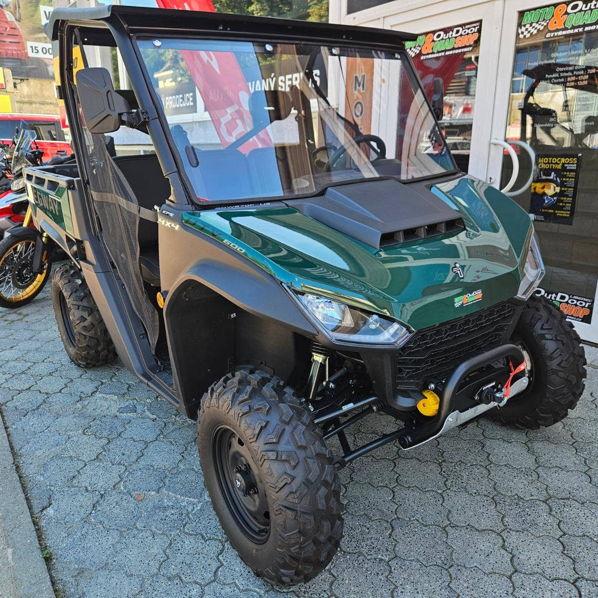 Elektrický naviják 4500 lbs, inteligentní elektrický posilovač řízení, TFT digitální přístrojová deska, tažné zařízení, nastavitelný volant, anatomicky tvarovaná sedadla s hlavovou opěrkou, tříbodové pásy, přední ochranný rám, zadní ochranný rám, bezpečnostní sítě na straně řidiče i spolujezdce, pevná střecha, velká sklopná korba, 14" disky.