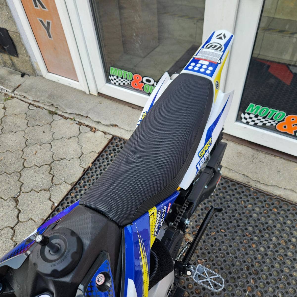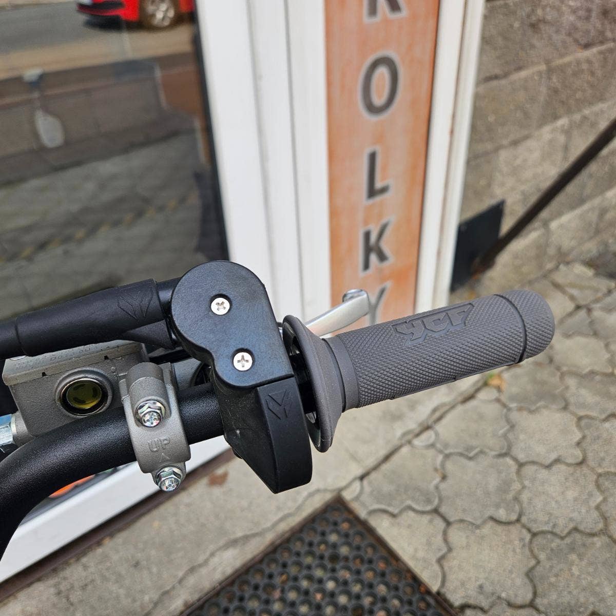 YCF START 125, nastavitelný plyn, těsnicí podložka pro řízení, horní svorka s 3 polohami pro uchycení řídítek