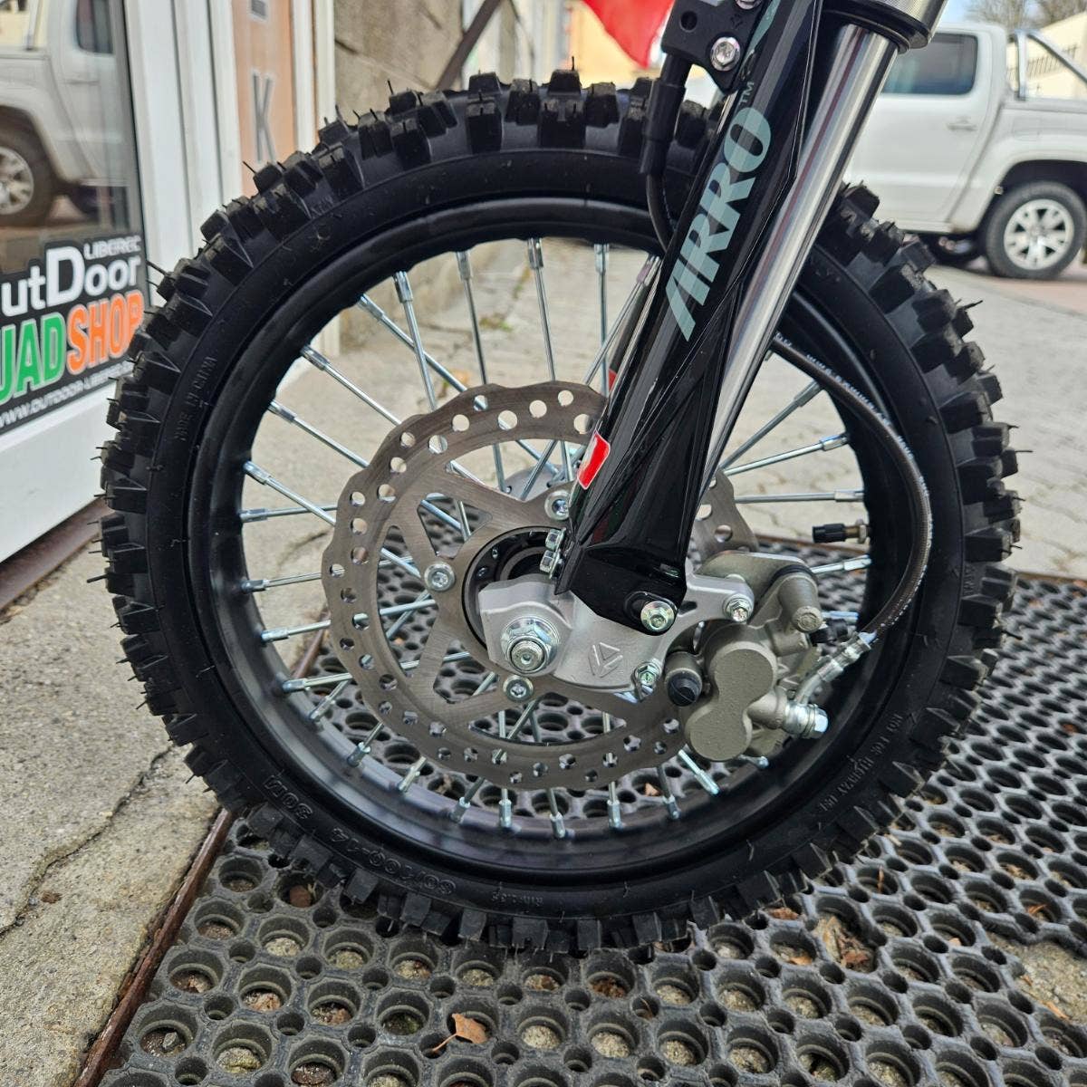 | Přední třmen | 2pístkový hydraulický |