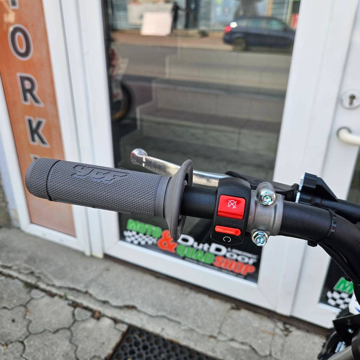 YCF START F125SE, nastavitelný plyn, těsnicí podložka pro řízení, horní svorka s 3 polohami pro uchycení řídítek